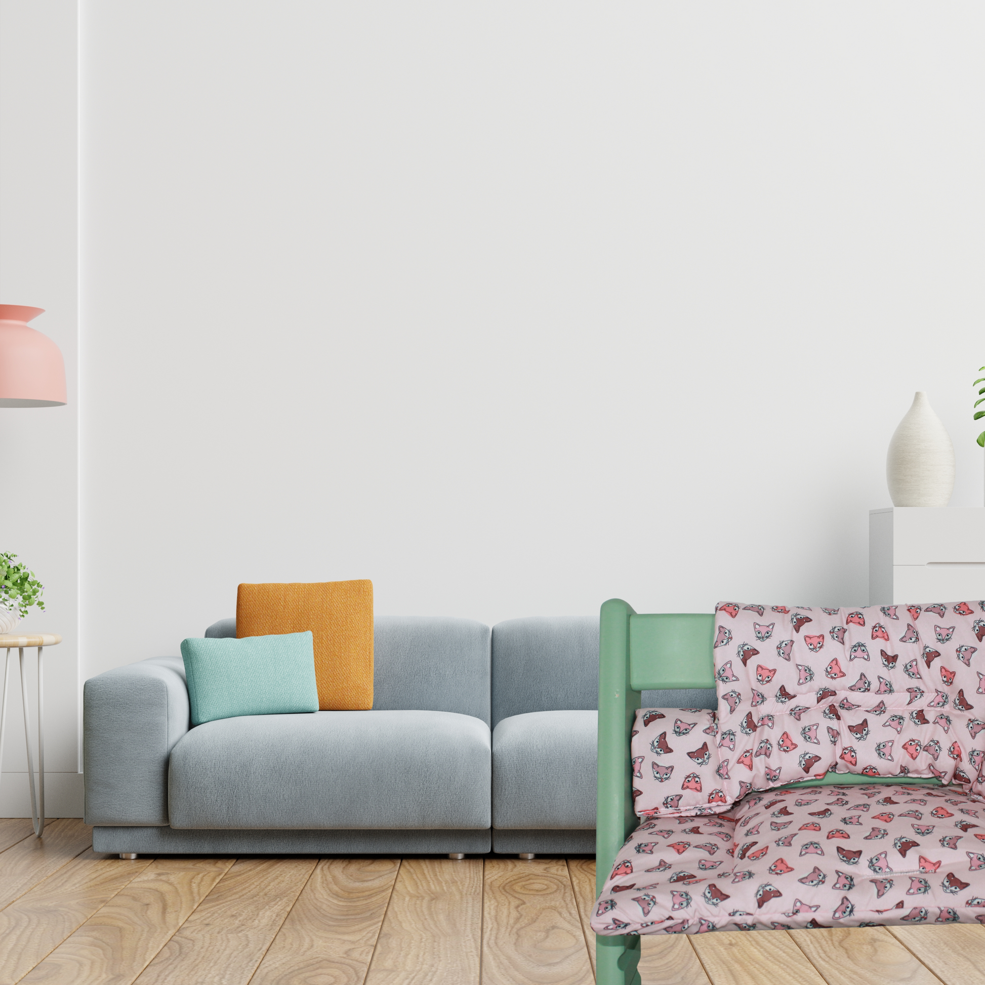 A high quality, custom-made highchair cushion set, suitable for use with the Stokke Tripp Trapp Highchair. The set consists of two pieces - a seat pad and back cushion.